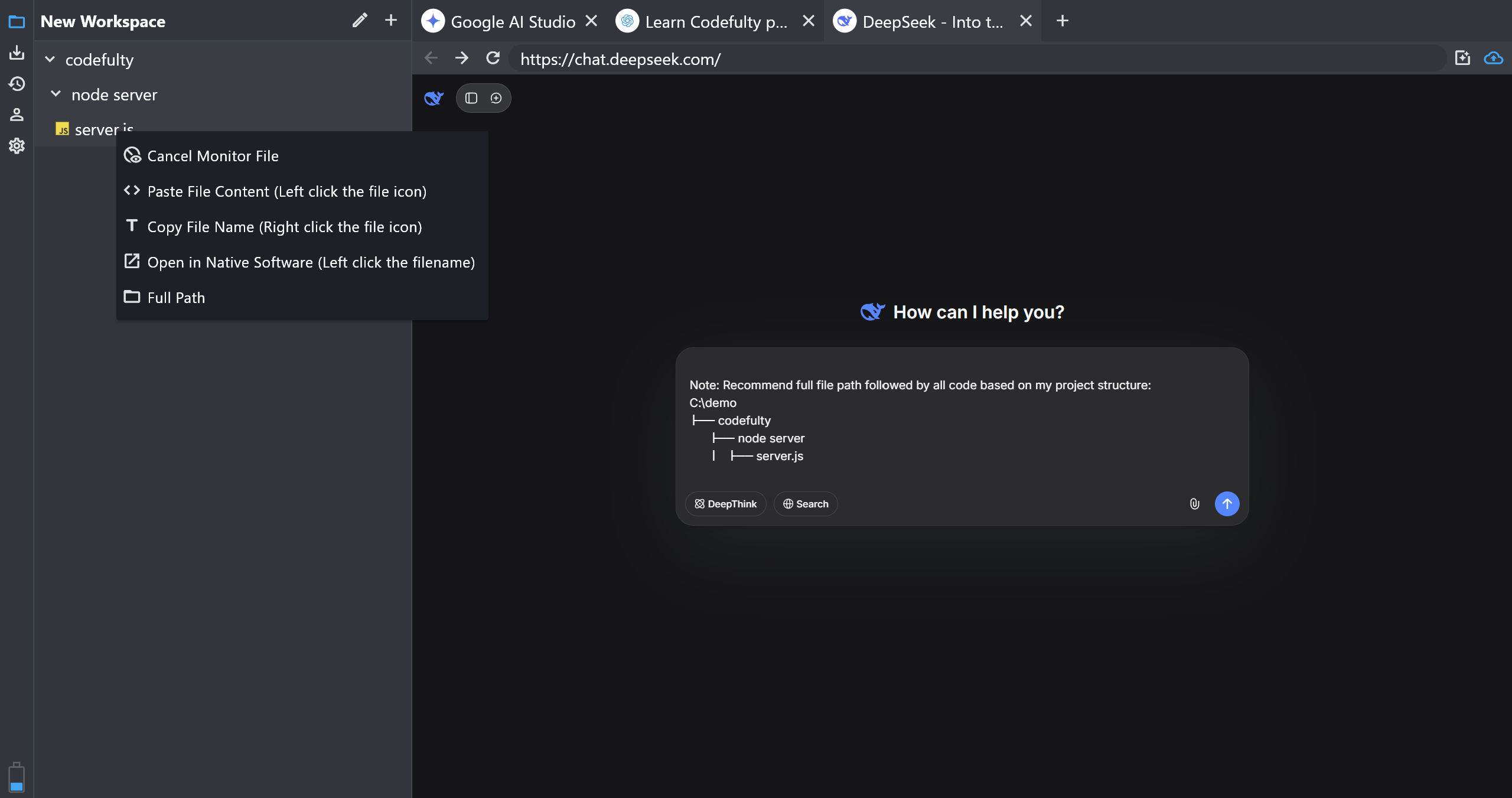 The project structure tree is a game changer. No copy-paste hassle — just click, insert, and let AI work directly with my local files.